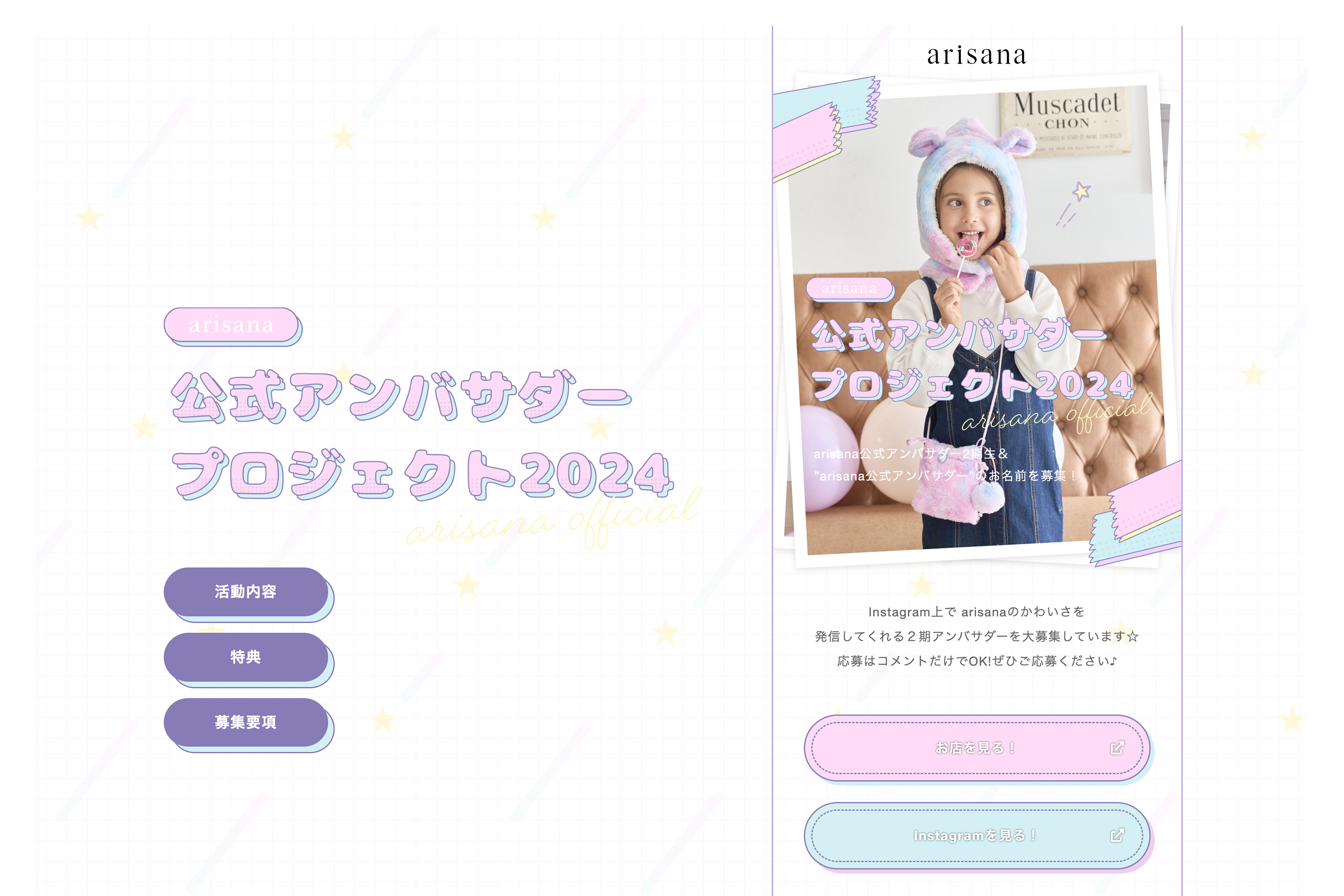 ◇アンバサダープロジェクト特設サイト https://www.rakuten.ne.jp/gold/arisana/arisana-ambassador-2024/index.html